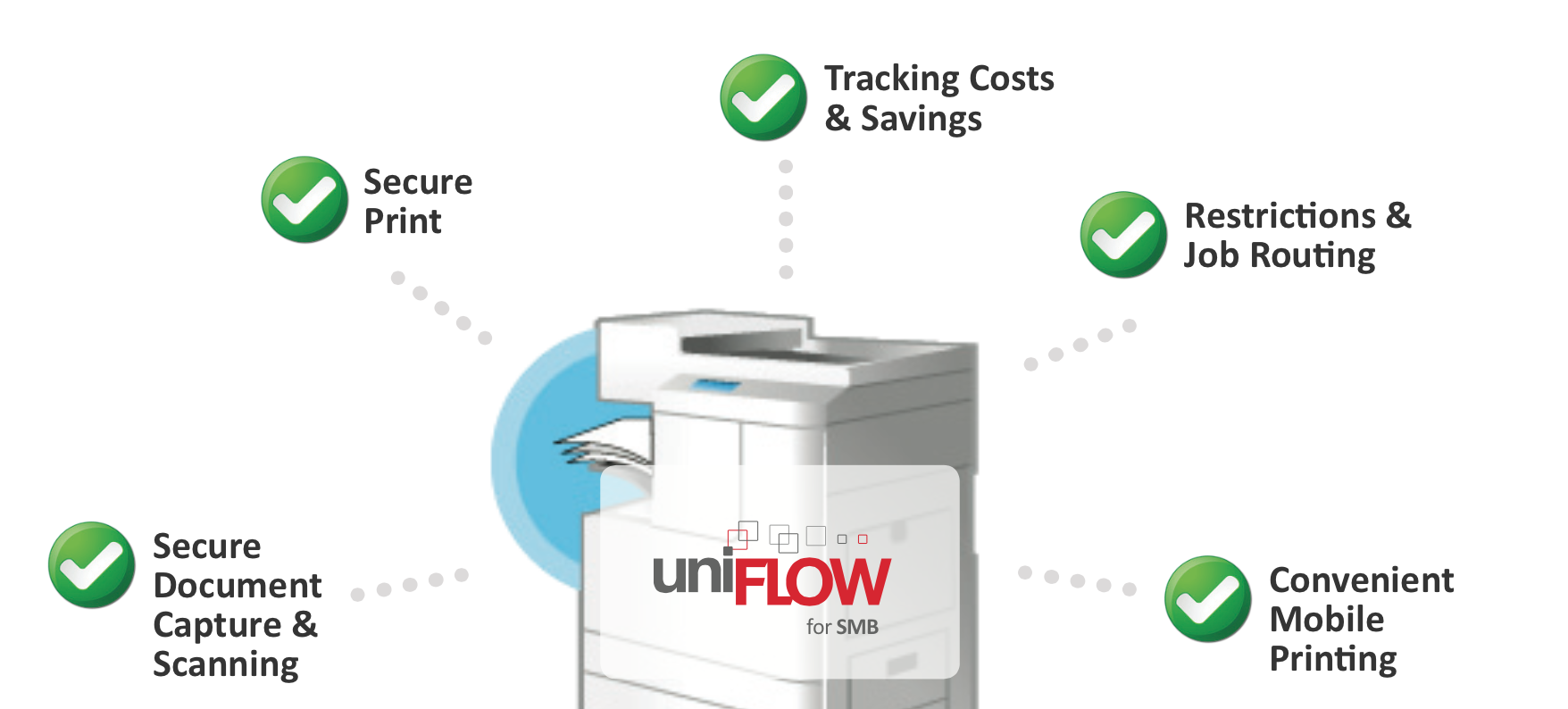 uniFLOW je sveobuhvatno Canon ispisno i sken rješenje, platforma koja pomaže organizacijama upravljati ispisom, skeniranjem i troškovima, te povećati produktivnost radnika uz postizanje sasvim nove razine sigurnosti dokumenata bez obzira izvodi li se ispis sa stolnih klijenata ili mobilnih uređaja. Kontrolom oba procesa, izlaznog/ispisa i ulaznog/skena na multifunkcijskim uređajima, uniFLOW omogućava IT administratorima upravljanje kroz JEDAN sistem sa JEDNIM setom korisničkih računa i JEDNOM bazom podataka.